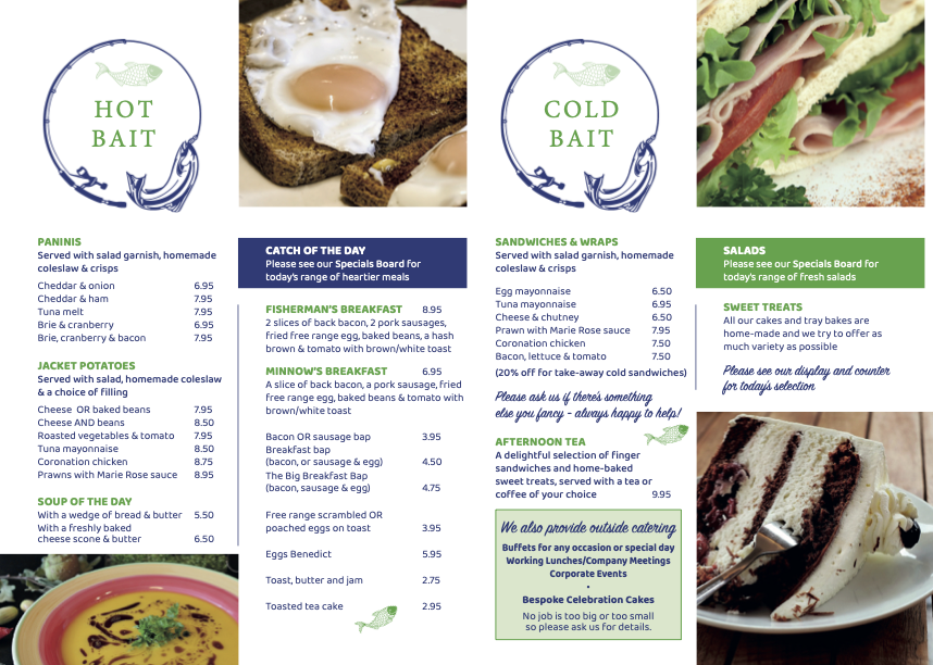 Morning patrons can indulge in a range of breakfasts, from the generous Fisherman's Breakfast (£8.95) to the cozy Eggs Benedict (£5.95). For those looking for a quick bite, the Bacon or Sausage Bap (£3.95) is a must-try. Pair your meal with a steaming cup of Yorkshire Tea or one of their expertly crafted coffees, including Americano and Latte.